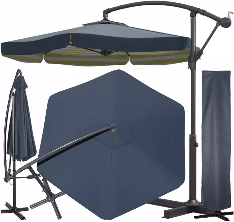 - размеры: высота 250 см; диаметр козырька: около 3 м, диаметр по ткани: около 3,5 м