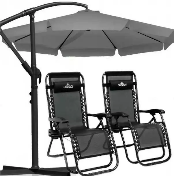 БОЛЬШОЙ СКЛАДНОЙ САДОВЫЙ ЗОНТ С ЧЕХЛОМ-ШТАНГОЙ 350 СМ + КОМПЛЕКТ ШЕЗЛОНГОВ 2ШТ DIEGO 173см (Польша)